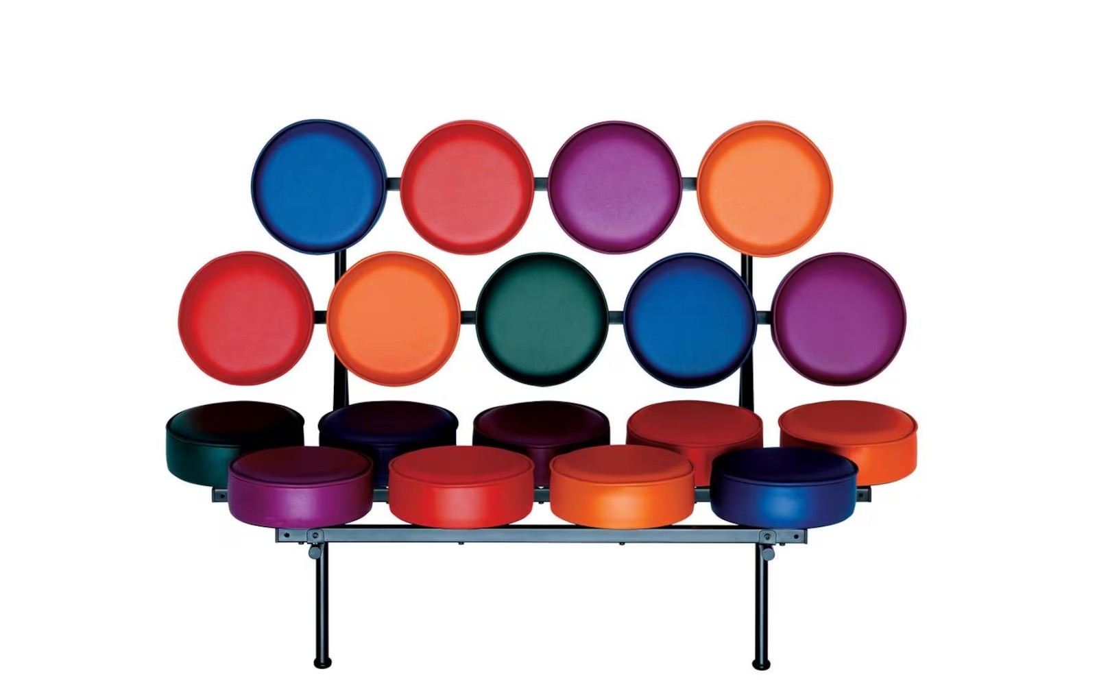 Ο Verner Panton, με τα έργα Wonderlamp και Panto Pop Chair, έδωσε νέα ζωή στο πλαστικό, το οποίο μετατράπηκε από βιομηχανικό υλικό σε όχημα φαντασίας. Η Panto Pop Chair, στοιβαζόμενη και πολύχρωμη, εκφράζει την αισιοδοξία και τη ρευστότητα του 1960, ενώ η Wonderlamp, με τις ημιδιαφανείς σφαίρες της, μοιάζει να αιωρείται στο χώρο, προσδίδοντας κίνηση και παιχνίδι στο φως. Αντίστοιχα, το Marshmallow Sofa (1956) των George Nelson και Irving Harper για τη Herman Miller αποτελεί ένα από τα πιο εμβληματικά έργα του pop art design. Δεκαοκτώ κυκλικά μαξιλάρια, τοποθετημένα σε μεταλλικό πλαίσιο, σχηματίζουν μια σύνθεση που θυμίζει παιδικό παιχνίδι και παραβιάζει τους κανόνες της αυστηρής λειτουργικότητας. Το κάθισμα γίνεται έτσι σύμβολο χαράς, υπερβολής και δημιουργικής ελευθερίας.