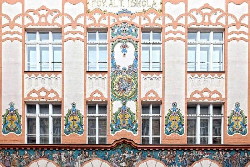 Το σχολείο στην οδό Dob, σχεδιασμένο από τον Ármin Hegedűs στις αρχές του 20ού αιώνα, είναι ένα χαρακτηριστικό κτίριο του ουγγρικού Art Nouveau. Οι λεπτομέρειες των προσόψεων, τα κεραμικά Zsolnay, οι καμπύλες στα παράθυρα -όλα μιλούν μια γλώσσα ποίησης. Μέσα από αυτή την πολυτέλεια του σχεδιασμού, ακόμα κι ένας παιδικός χώρος μετατρέπεται σε αντικείμενο θαυμασμού και σεβασμού.